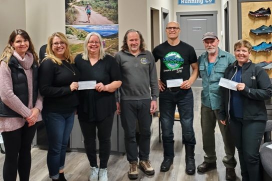 Representatives from three of the organizations were on hand at the Trail Race Society’s recent AGM to receive cheques . Recipients noted that these funds go directly back into clearing, improving and adding to trails in areas around Chilliwack.